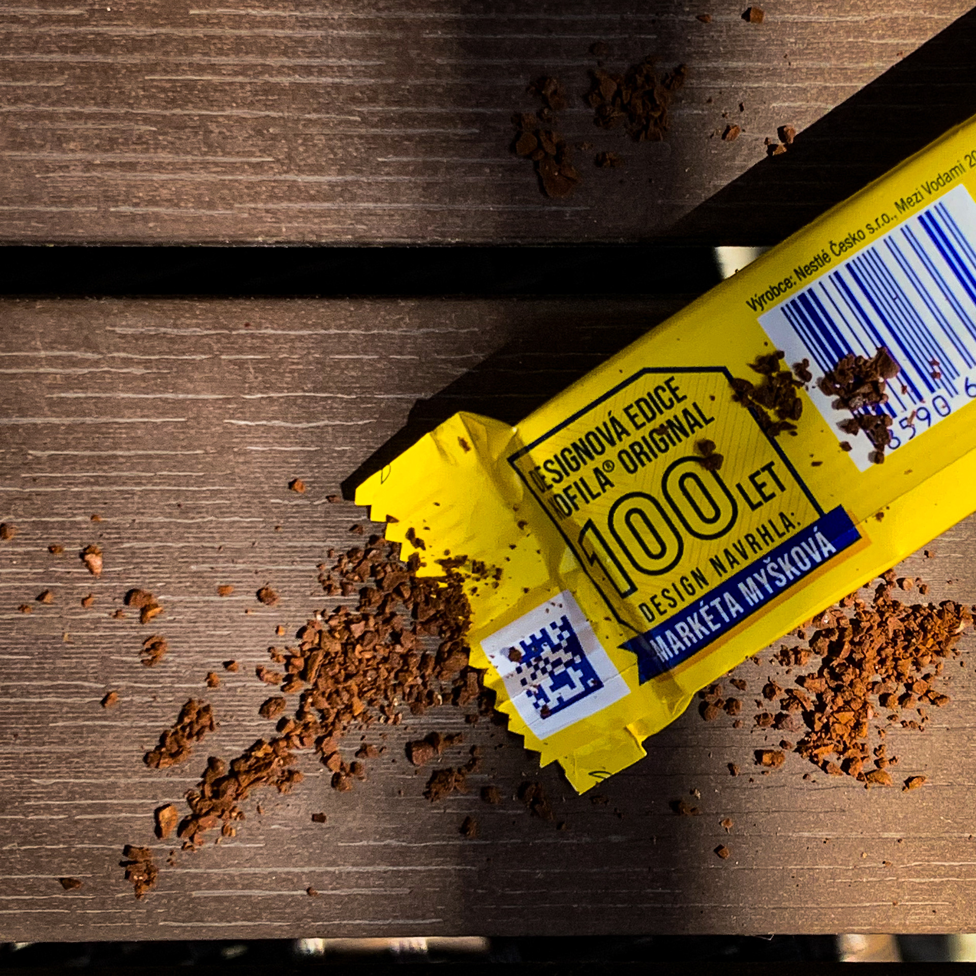 Návrh byl součástí spolupráce Ateliéru grafický design FMK UTB ku příležitosti výročí 100 let tyčinky Kofila na trhu. Design je inspirován vzory z 20. let minulého století (tedy z období vzniku Kofily) a jeho obsahem jsou ilustrace odkazující na kávu — kávové zrno, kapka, filtry, pára — a čokoládu.